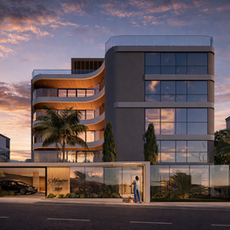 Projeto de um Edifício Misto, com uso comercial no térreo e residencial nos demais pavimentos, com acessos em ruas distintas.